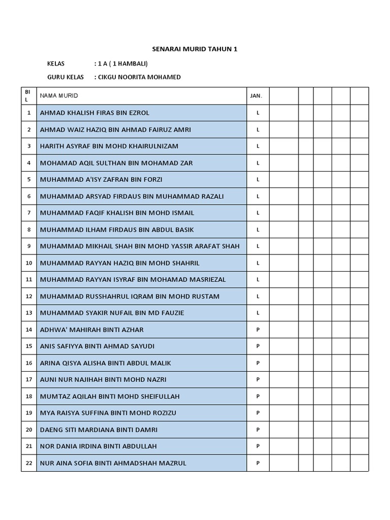 Senarai Nama Murid Ikut Bulan Kelahiran Pdf